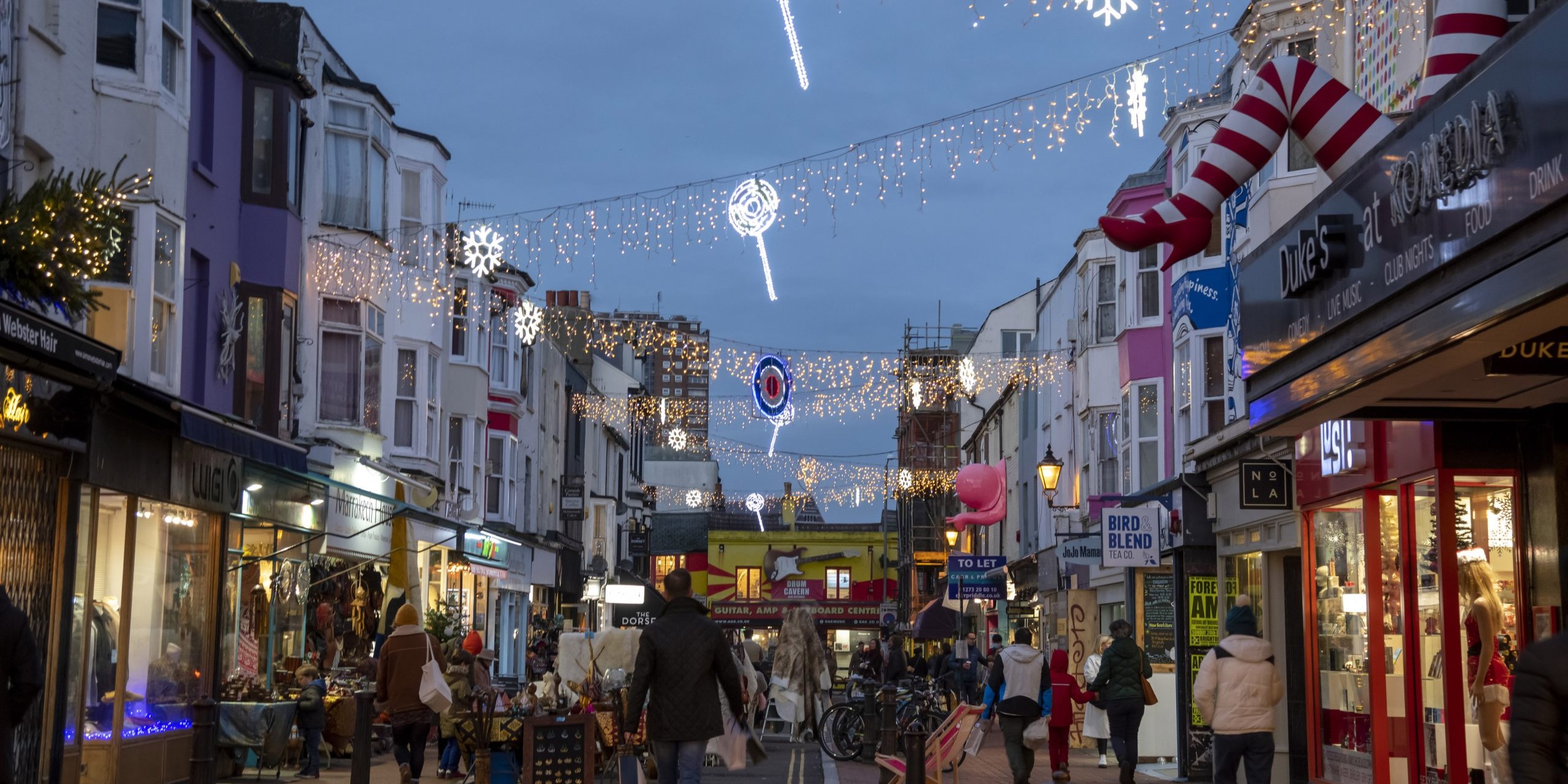 If you're eager to get into the festive spirit, grab a hot choccy and take a stroll in North Laine, down Western Road, East Street, Preston Street or through The Lanes, where overhead, you'll find thousands of glimmering lights between mid-November to January.