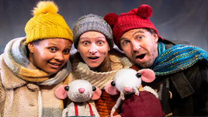 The Snow Mouse returns, leading three children on a magical winter adventure with live music and puppetry.